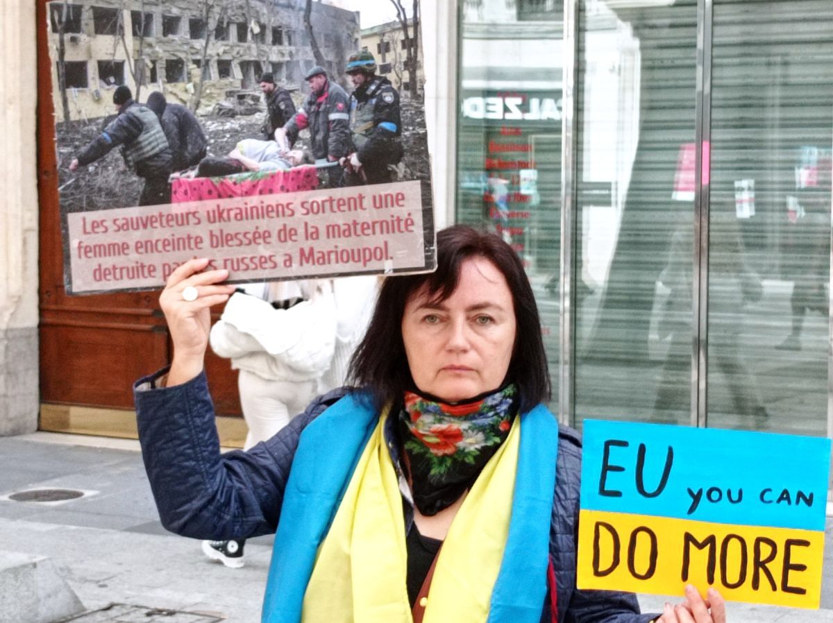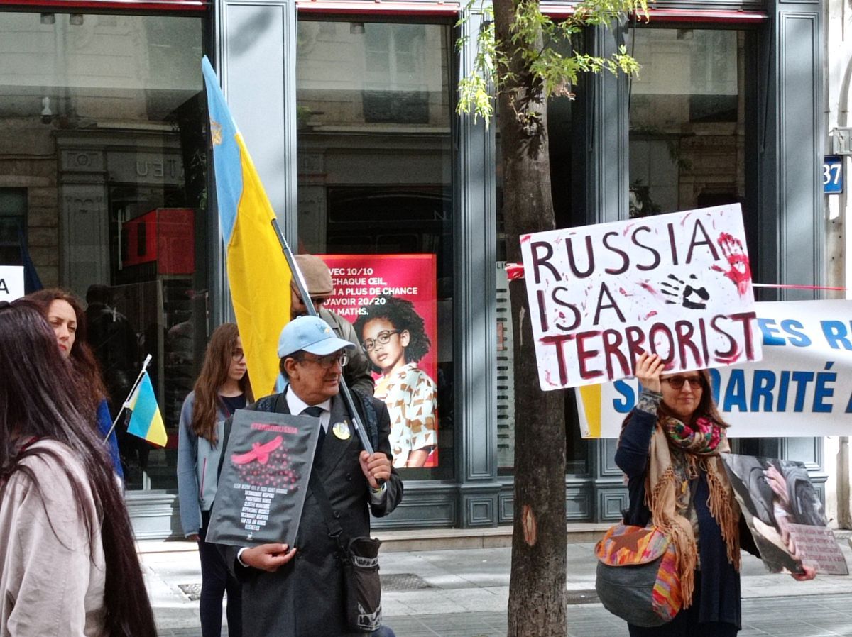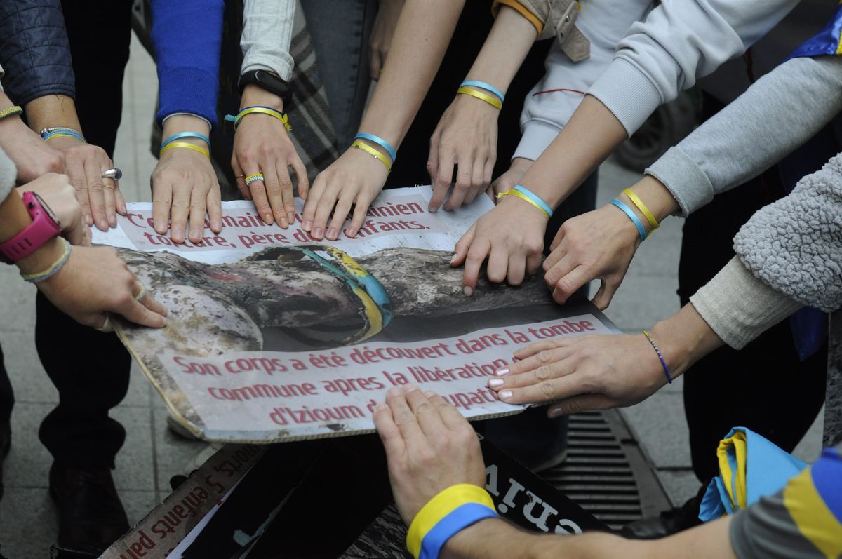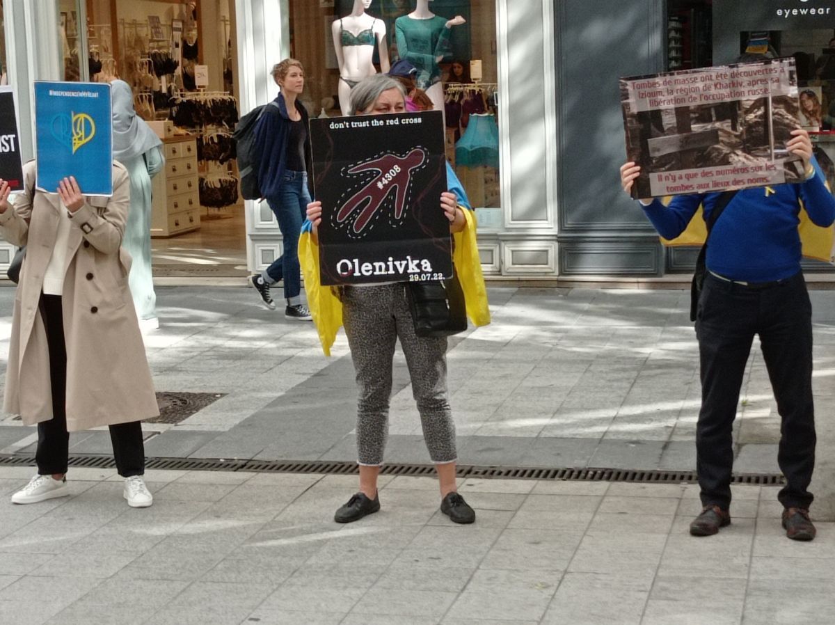 Lyon demonstrators held photos with tortured Ukrainians in Izium and Olenivka. They also showed passers-by photos of Ukrainian cities destroyed by Russian missiles.