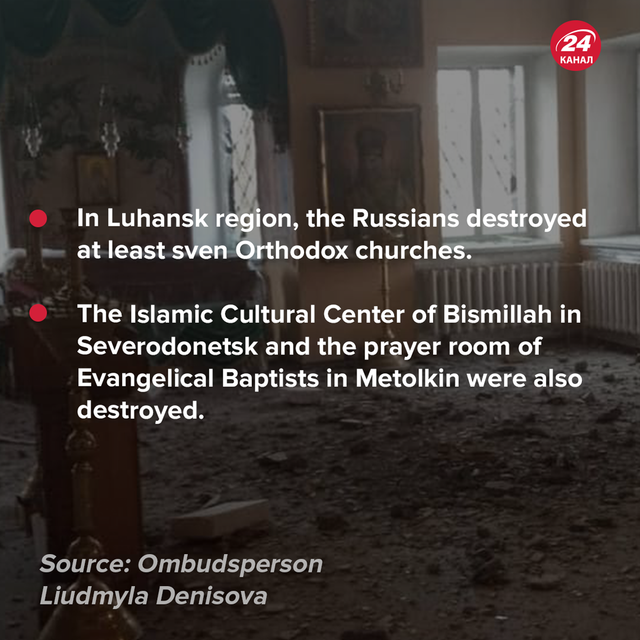 In Luhansk region, the Russians destroyed at least sven Orthodox churches.